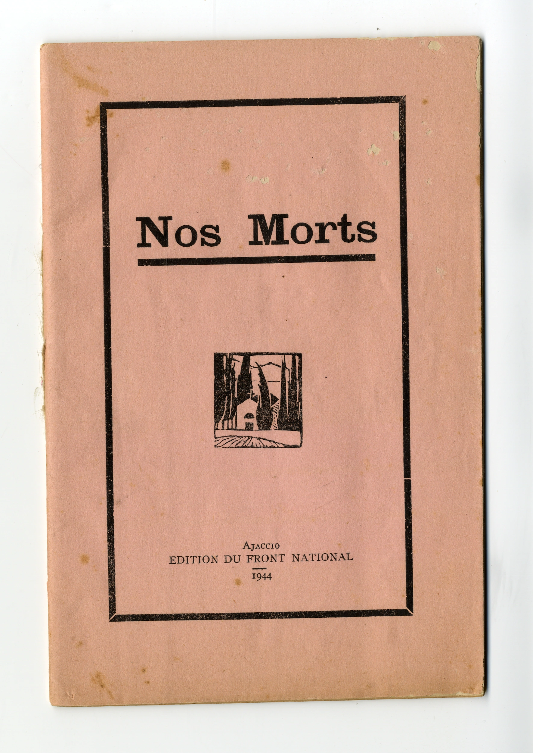 Dès la Libération de la Corse, est martyrologe de la Résistance insulaire est construit. Les grands héros encore présents dans notre imaginaire et ceux ayant connu une postérité plus brève sont mis en avant dans la presse mais aussi dans de nombreuses publications. Cette brochure intitulée Nos morts a été publiée en 1944 à Ajaccio. Elle regroupe, pour la première fois, des biographies illustrées de résistants corses qui se sont sacrifiés lors de la lutte contre le fascisme et le nazisme. Ce genre de document à valeur à la fois exemplaire et mémoriel va se retrouver partout en Europe après la Libération. Il témoigne de la nécessité pour les populations de surmonter le traumatisme collectif qu’a été l’occupation et les morts qu’elle a engendrés.